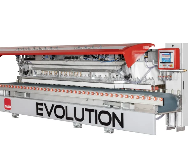 Sassomeccanica's Evolution is an edge polisher designed to accelerate profiling and polishing of complex profiles. Due to the optimal spindle arrangement, it reduces downtime and increases productivity. The hot-dip galvanized construction ensures durability, while the ability to process thicknesses up to 10 cm makes it ideal for applications on thick materials. The Evolution is the perfect choice for those seeking efficiency and precision in rib machining.