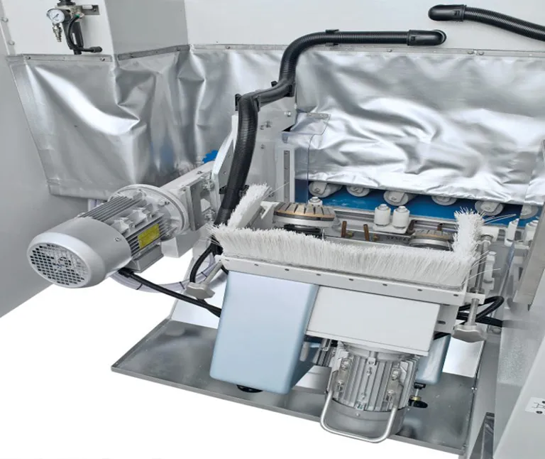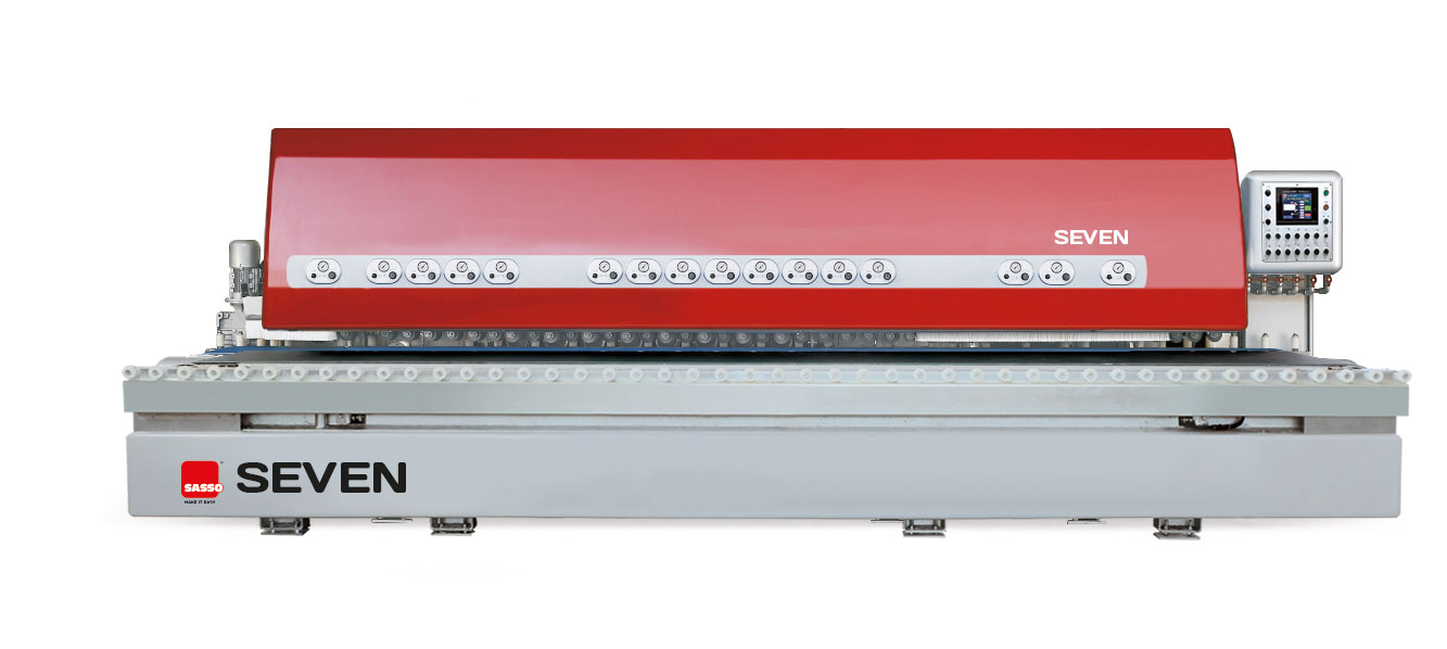 Sassomeccanica's Seven is an edge polisher designed to offer maximum versatility when machining complex profiles. Thanks to its wide structure, additional spindles can be accommodated, allowing a wide range of machining operations on straight and bullnose ribs. The hot-dip galvanizing of the structure ensures durability, while the ability to machine thicknesses up to 10 cm makes it ideal for applications on thick materials. The Seven is the perfect choice for those seeking efficiency and precision in rib machining.